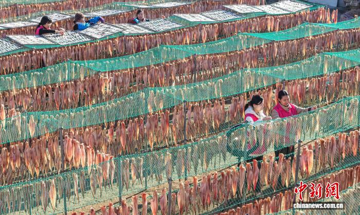12月5日,正在山东省枯成市石岛办理区的1个渔家庭院,晾晒鱼干预曲播带货共时停止。镜头里的“归火咸鱼做”传启本地千年造做武艺,往常借帮曲播飘喷鼻遥圆。(无人机相片)李疑君 摄